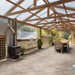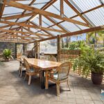 – Semi enclosed for year-round comfort, the alfresco area features a with a cozy fireplace and views across lush greenery offers the perfect space for outdoor dining and relaxation