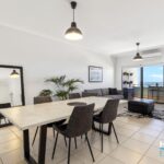 – Prepare meals with a view in the modern kitchen, equipped with an induction cooktop, dishwasher, stone benchtops, and a convenient breakfast bar
