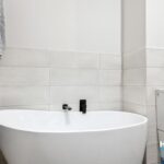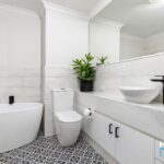 – The expansive master suite offers a private retreat, featuring balcony access with captivating 180-degree ocean vistas, a walk-through robe, and a luxurious ensuite with a freestanding bathtub, walk-in shower, WC, and sleek vanity