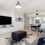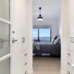 – Two additional queen-sized bedrooms feature neutral tones and abundant natural light, with bedroom two enjoying access to a private outdoor area