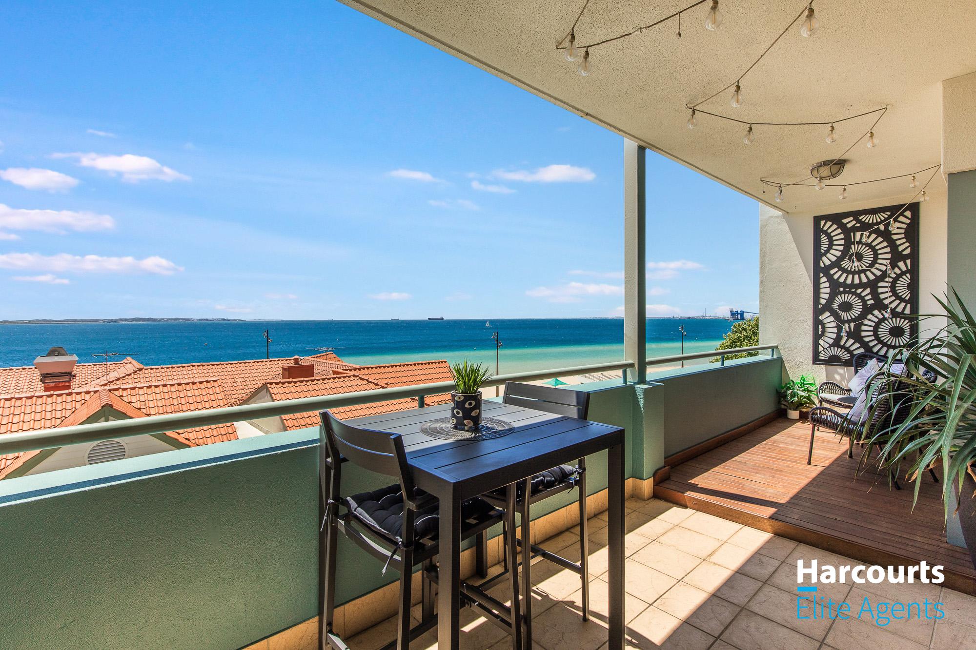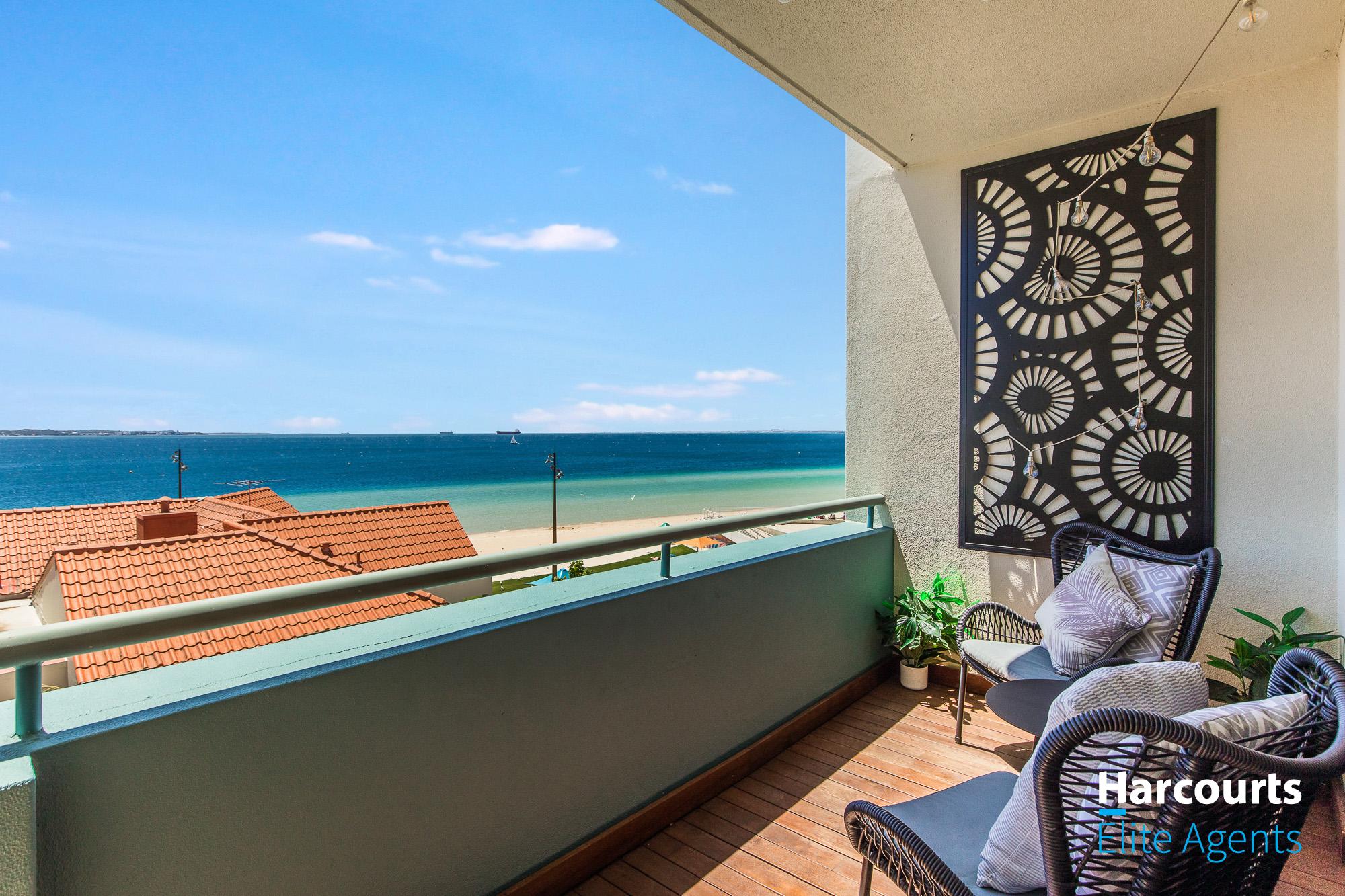 – The front balcony, with sweeping ocean views extending beyond Rottnest and Garden Island, features distinct zones for dining and lounging-perfect for relaxing and taking in spectacular sunsets over the water