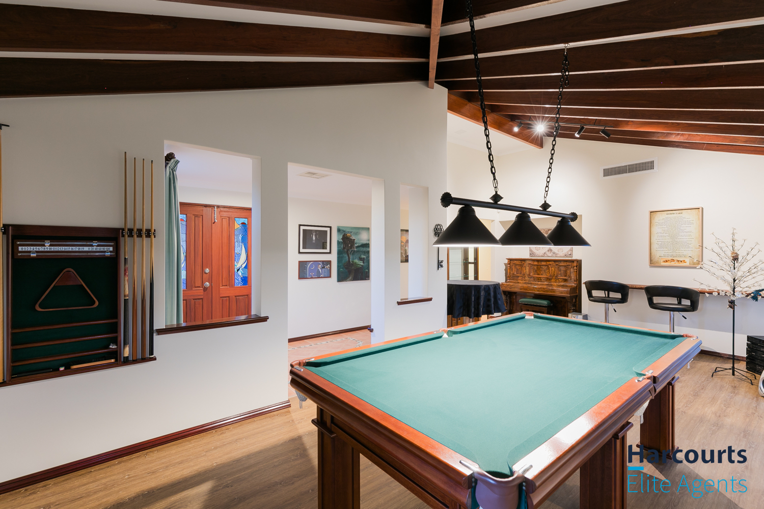 – Formal front lounge and dining room with a stunning vaulted timber ceiling
