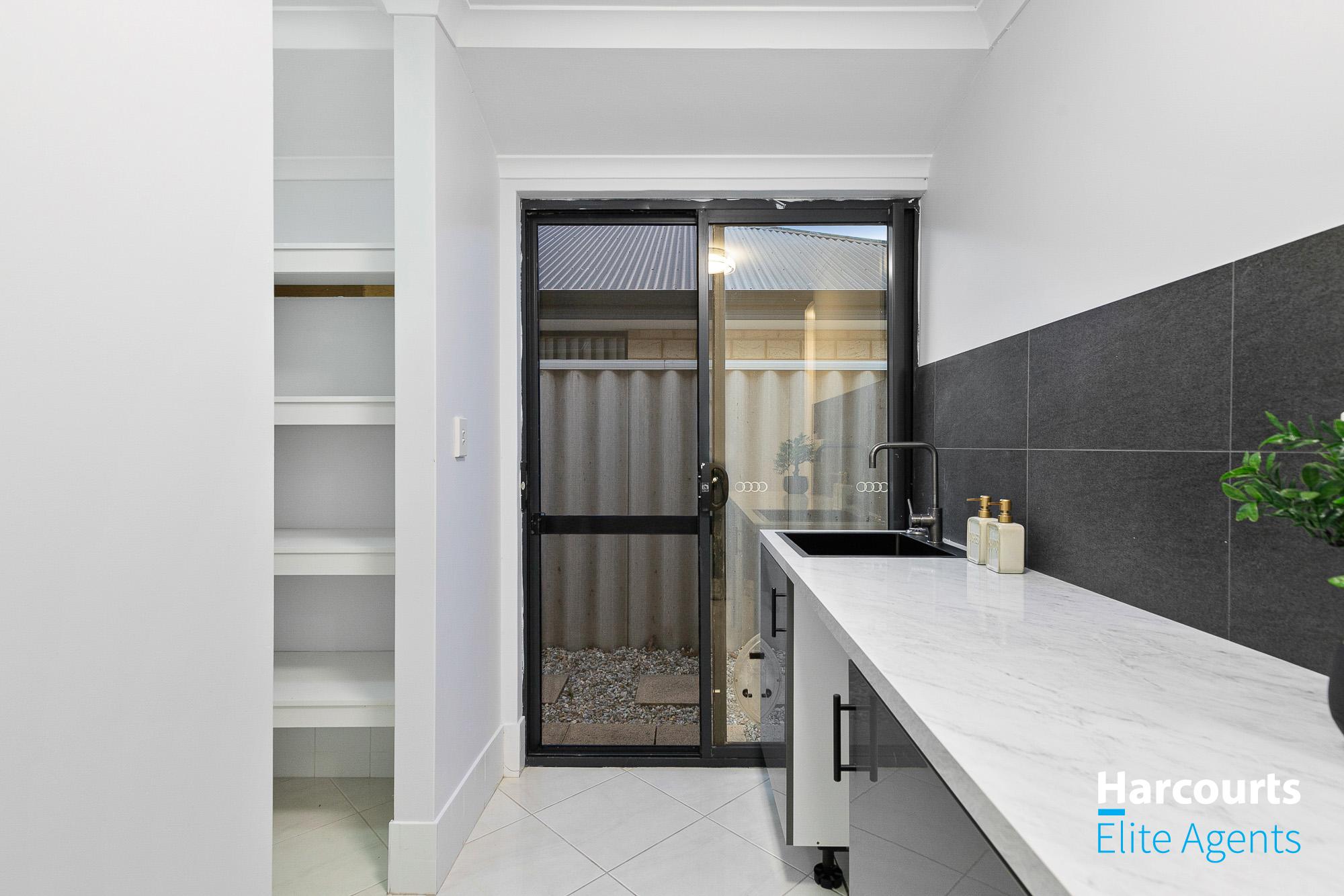 – Practical laundry with bench space, a walk in linen press and external access