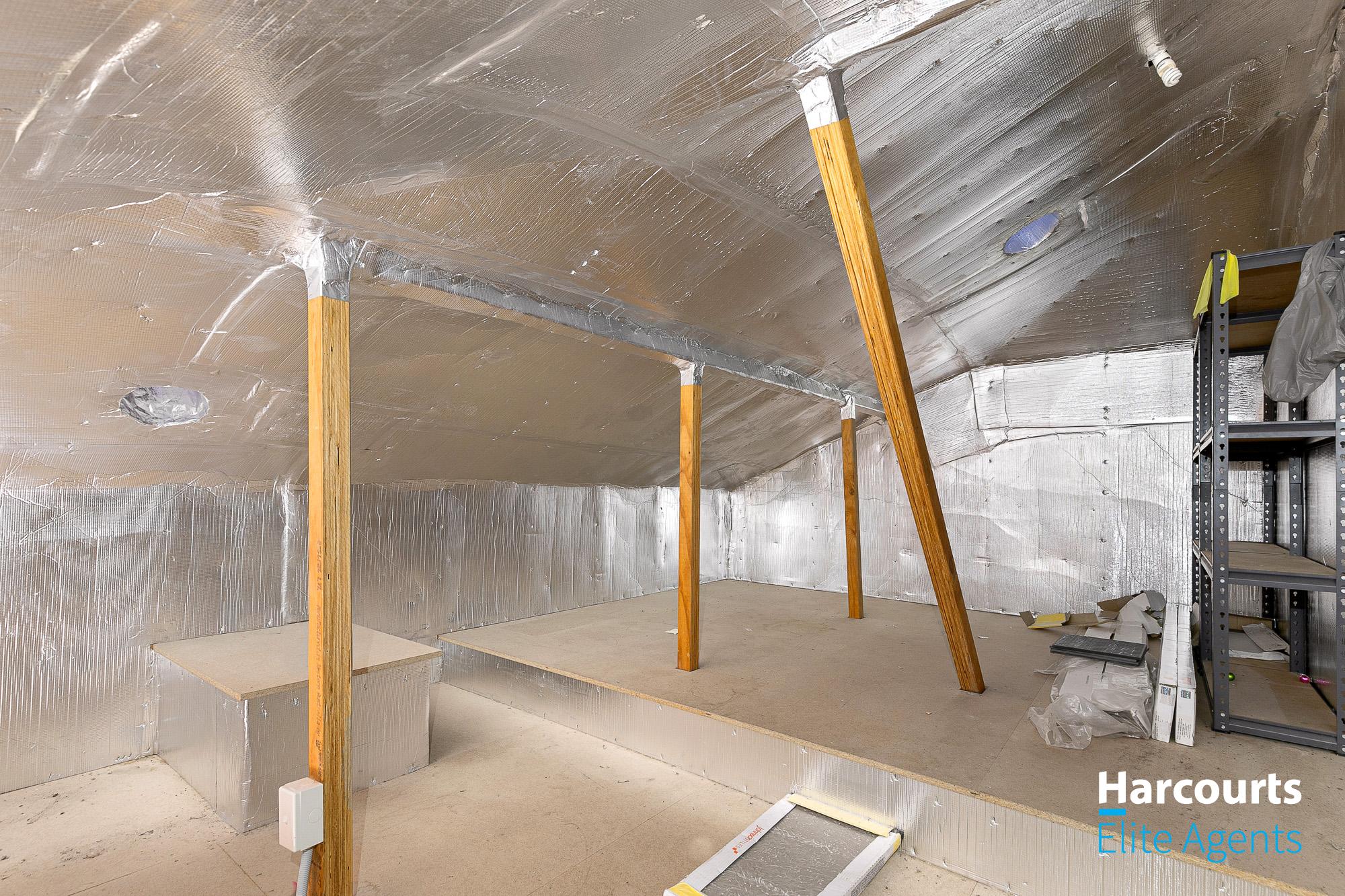 – 12sqm lined attic storage space with lights for easy accessibility