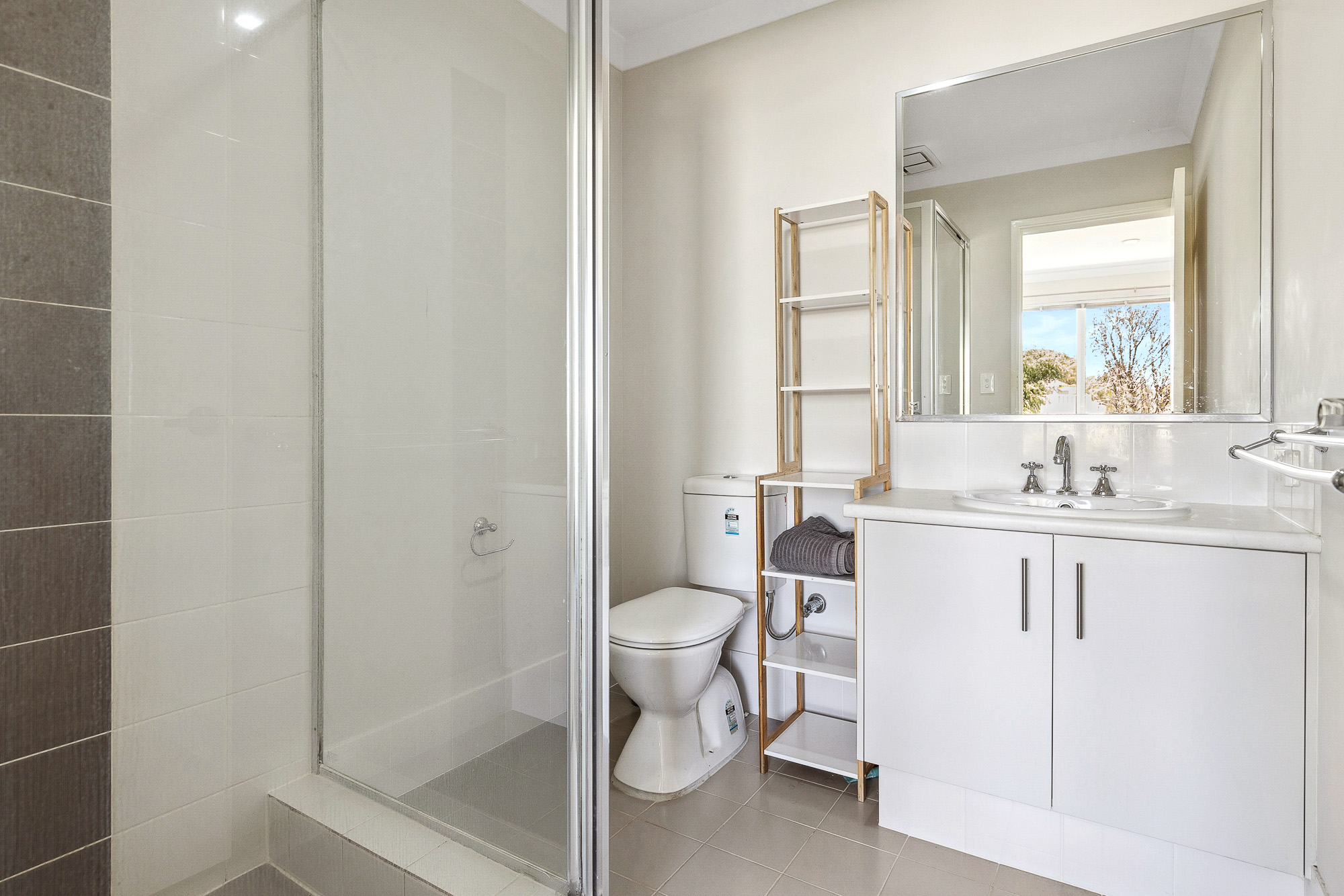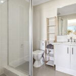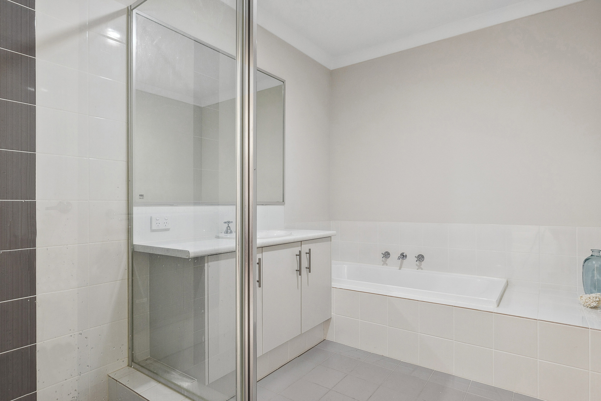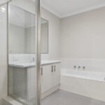 – The main bathroom includes a glass frame shower, wide vanity & separate bath